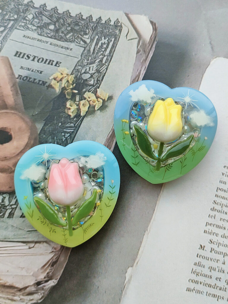 着色したレジンをシリコンブラシですくい、モールド入れて行きます。
