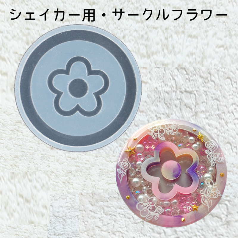 今回はUVレジンとマル形のシェイカー用シリコンモールドを使ってお花のステッカーを貼ったシェイカーキーホルダーの作り方をご紹介いたします。