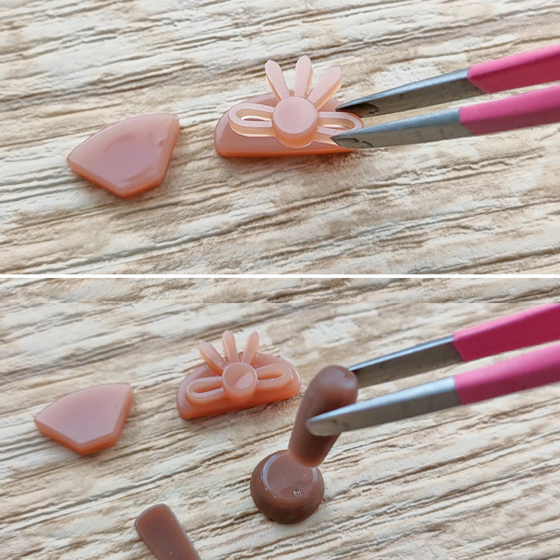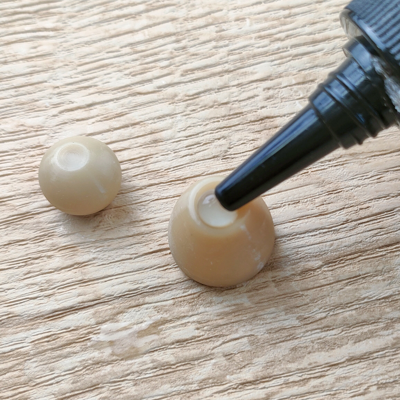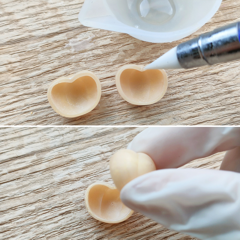 片方のフレーム部分にOXCY UV-LED Resinを少量塗ってもう半分のシェイプをぴったり重ねます。
