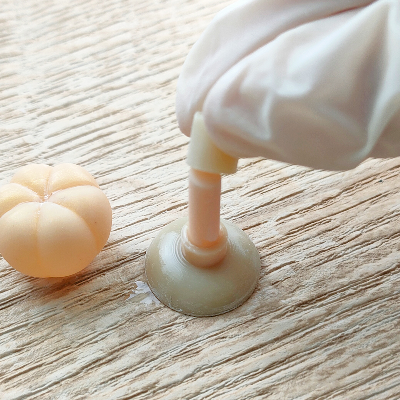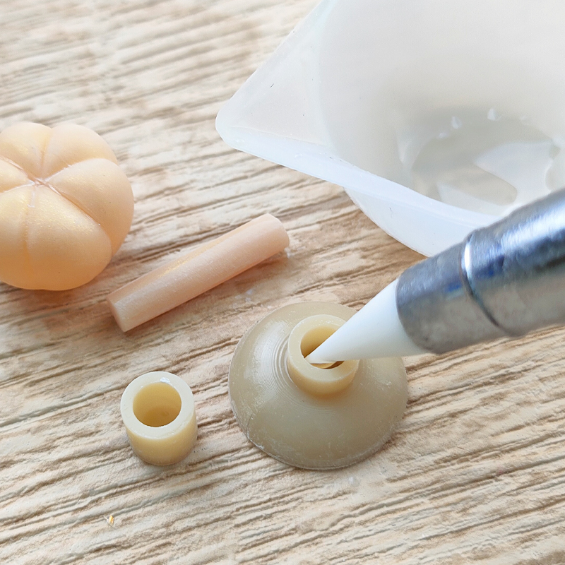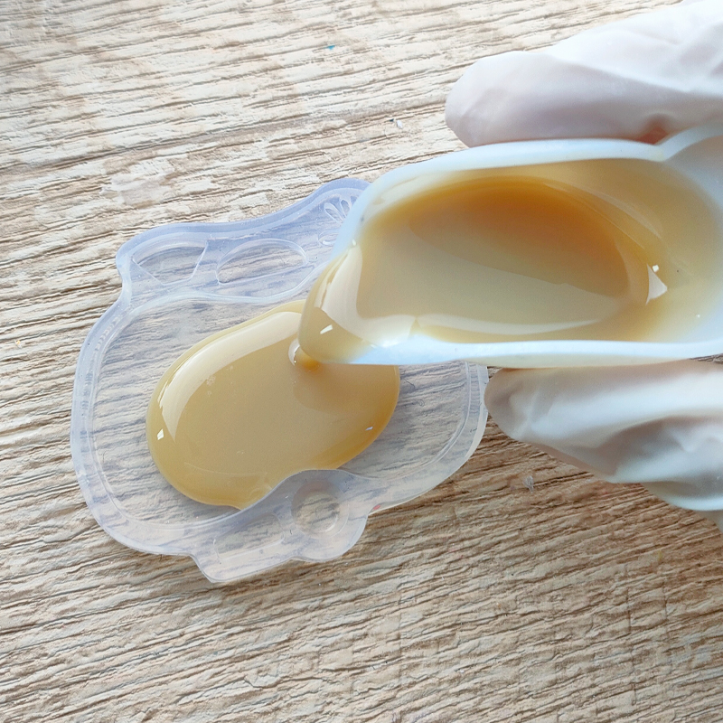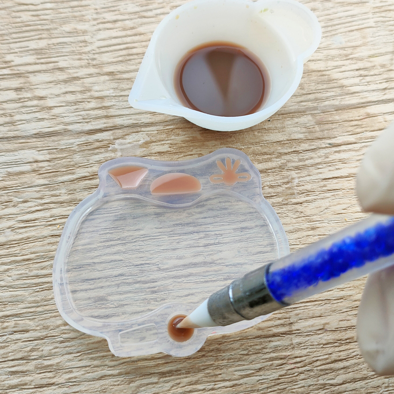 着色剤とOXCY UV-LED Resinを混ぜ合わせたUVレジンを脚部分がつくれるモールドに流します。