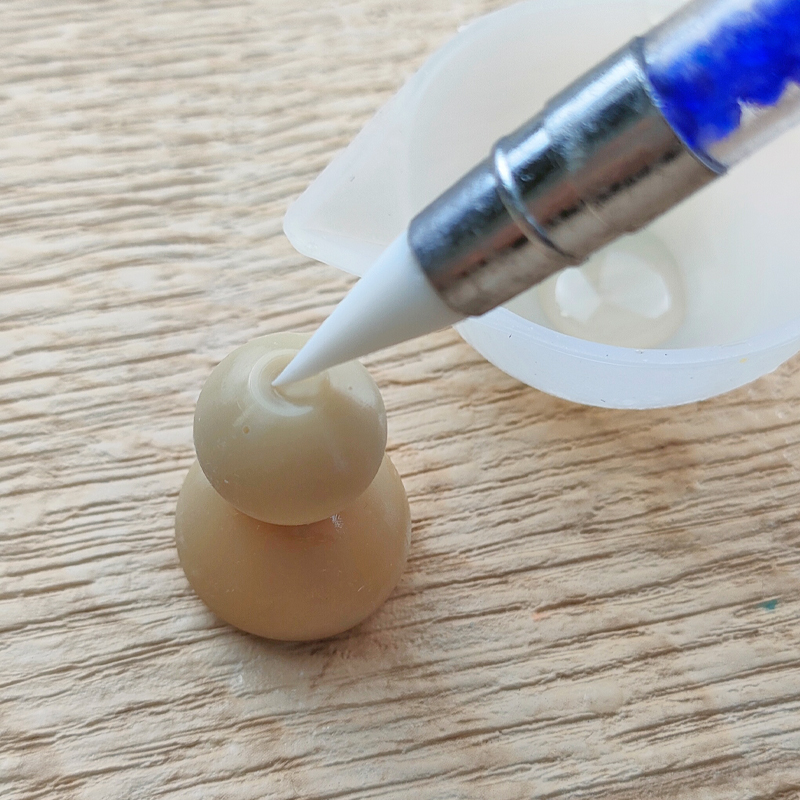 女雛、男雛の頭部分にも同じように色付きUVレジンを流します。