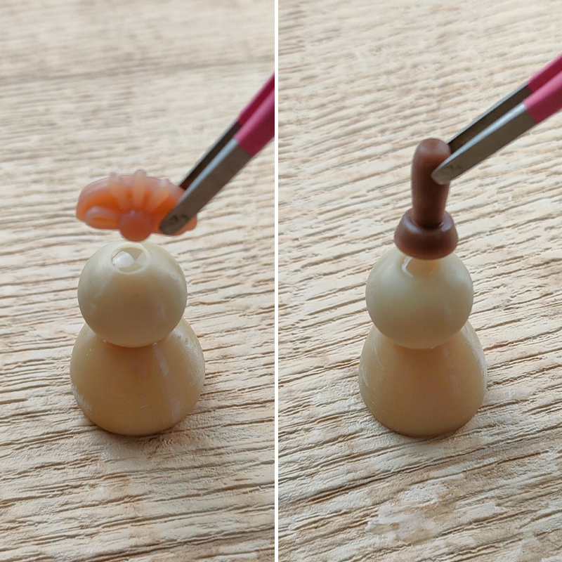 頭と胴体を付けます。OXCY UV-LED Resinを胴体部分に流して、頭部分をのせます。